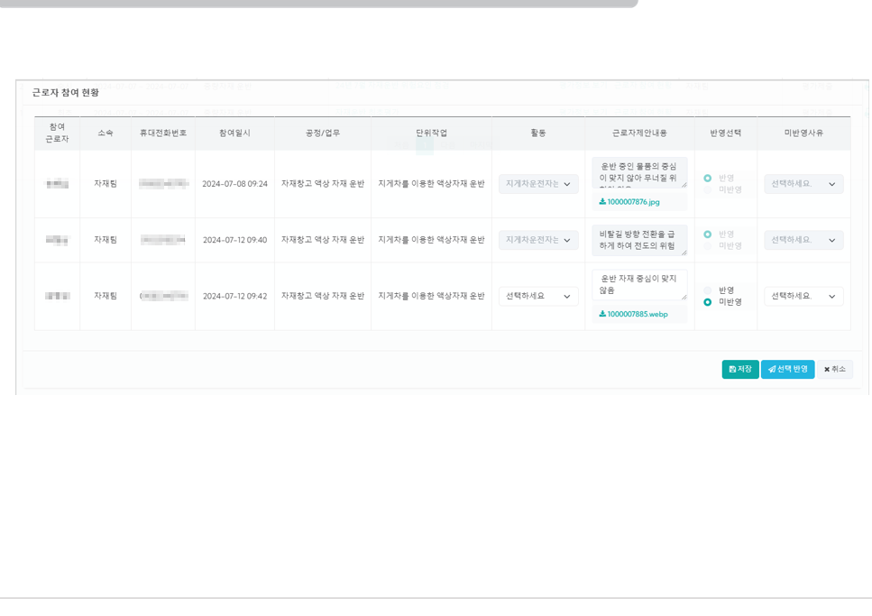 현장의 안전관리 결과가실시간 입력되고,스카이넷으로 통합됩니다.
